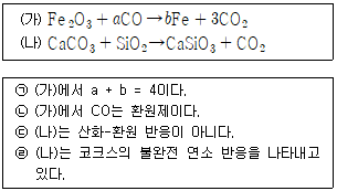 다음은 철의 제련과정과 관련된 화학 반응식이다. 이에 대한 설명으로 옳은 것만을 보기에서 있는 대로 고른 것은?
