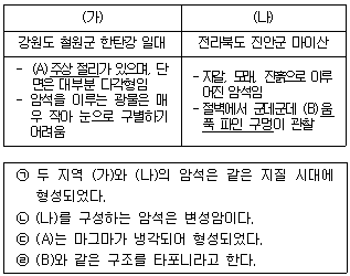다음은 우리나라의 지질 명소 (가)와 (나)의 특징을 나타낸 것이다. 이에 대한 설명으로 옳은 것을 보기에서 모두 고른 것은?
