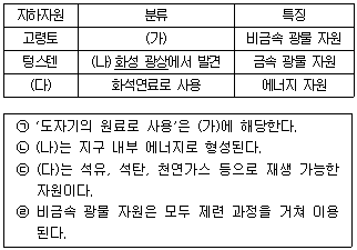 다음 표는 지하자원의 분류와 특징을 나타낸 것이다. 이에 대한 설명으로 옳은 것을 보기에서 모두 고른 것은?