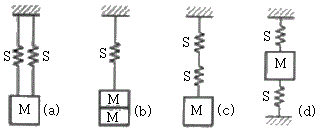 아래 그림과 같은 진동계에서 각각의 고유진동수로 옳은 것은? (단, S는 스프링 전수, M은 질량)
