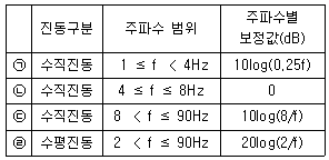 다음 중 인체감각에 대한 주파수별 보정값으로 틀린 것은? (단, 수평진동일 경우는 수평 진동이 1~2Hz 기준)