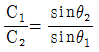 다음 중 Snell의 법칙 표현으로 옳은 것은? (단, 매질 1에서의 입사각 및 음속은 θ1 및 C1, 매질 2에서의 굴절각 및 음속은 θ2 및 C2)