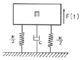 그림의 진동계가 강제 진동을 하고 있으며, 변위진폭이 X일 때 기초에 전달되는 최대 힘의 크기는? (단, F(t) = fosinωt이다.)