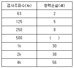 A공장에서 근무하는 근로자의 청력을 검사하였다. 검사 주파수별 청력손실이 표와 같을 때, 4분법 청력손실이 28dB이었다. 500Hz에서의 청력 손실은 몇 dB인가?