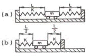 그림 (a)와 같은 진동계의 스프링을 압축하여 그림 (b)와 같이 만들었다. 압축된 후의 고유진동수는 처음에 비해 어떻게 변하는가? (단, 다른 조건은 변함없다고 가정한다.)