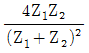 고유음향 임피던스가 각각 Z1, Z2인 두 매질의 경계면에 수직으로 입사하는 음파의 투과율은?