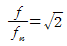 외부에서 가해지는 강제진동수 f와 계의 고유진동수 fn의 비(Ratio) 관계에서 전달력과 외력이 같은 경우는?
