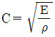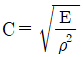 고체 및 액체 중에서의 음의 전달속도(C)와 영률(E) 및 매질밀도(ρ)와의 관계식으로 옳은 것은? (단, 단위는 모두 적절하다고 가정)