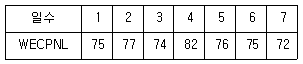 항공기소음을 측정하여 구한 1일 WECPNL이 다음과 같을 때 7일간 WECPNL은?