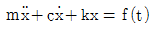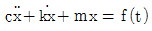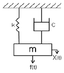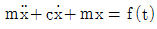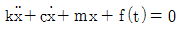 그림과 같은 1 자유도계 진동계가 있다. 이계가 수직방향 X(t)으로 진동하는 경우 이 진동계의 운동방정식으로 옳은 것은? (단, k=스프링정수, c=감쇠계수, f(t)=외부가진력)
