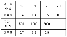 다음 표는 어떤 자재의 1/3 옥타브 대역으로 측정한 중심주파수별 흡음율이다. 감음계수(NRC)는 얼마인가?