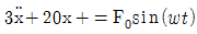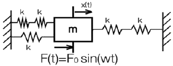 다음 질량-스프링 계의 운동 방정식을 옳게 나타낸 것은? (단, 질량 m은 3kg, 개별 스프링 정수 k=10N/m, 감쇠는 무시한다.)