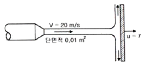 단면적이 0.01m2인 옥내소화전 노즐로 그림과 같이 7m/s로 움직이는 벽에 수직으로 물을 방수할 때 벽이 받는 힘은 약 몇 kN인가?