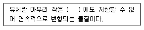 유체의 정의를 설명할 때 ( )안에 가장 알맞는 용어는?