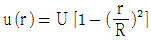 반지름 R인 수평 원관 내 유동의 속도분포가
