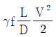 정상상태의 원형 관의 유동에서 주 손실에 의한 압력강하(△P)는 어떻게 나타내는가? (단, V는 평균속도, D는 관 직경, L은 관 길이, f는 마찰계수, ρ는 유체의 밀도, γ는 비중량이다.)