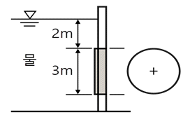 그림과 같이 수면으로부터 2m 아래에 직경 3m 의 평면 원형 수문이 수직으로 설치되어 있다. 물의 압력에 의해 수문이 받는 전압력의 세기(kN)는?