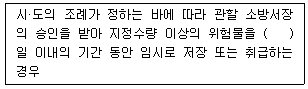 49 소방기본법상 명령권자가 소방본부장,소방서장, 소방대장에게 있는 사항은? 50 소방기본법령상 특수가연물의 저장 기준 중 다음 ( ) 안에 알맞은 것은? (단, 석탄·목탄류를 발전용으로 저장하는 경우는 제외한다.) 51 소방시설공사업법상 제3자에게 소방시설공사 시공을 하도급한 자에 대한 벌칙 기준으로 옳은 것은? (단, 대통령령으로 정하는 경우는 제외한다.) 52 소방기본법령상 인접하고 있는 시·도간 소방 업무의 상호응원협정을 체결하고자 하는 때에 포함되도록 하여야 하는 사항이 아닌 것은? 53 위험물안전관리법상 허가를 받지 아니하고 당해 제조소등을 설치하거나 그 위치·구조 또는 설비를 변경할 수 있으며, 신고를 하지 아니하고 위험물의 품명·수량 또는 지정수량의 배수를 변경할 수 있는 기준으로 틀린 것은? 54 소방본부장 또는 소방서장은 화재예방강화지구 안의 관계인에 대하여 소방상 필요한 훈련 및 교육을 실시하고자 하는 때에는 관계인에게 훈련 또는 교육 며칠 전까지 그 사실을 통보하여야 하는가? 55 위험물안전관리법령상 제조소등이 아닌 장소에서 지정수량 이상의 위험물을 취급할 수 있는 기준 중 다음 ( ) 안에 알맞은 것은? 56 소방특별조사 결과 소방대상물의 위치·구조·설비 또는 관리의 상황이 화재나 재난·재해예방을 위하여 보완될 필요가 있거나 화재가 발생하면 인명 또는 재산의 피해가 클 것으로 예상되는 때 관계인에게 그 소방대상물의 개수·이전·제거, 사용의 금지 또는 제한, 사용폐쇄,공사의 정지 또는 중지, 그 밖의 필요할 조치를 명할 수 있는 자가 아닌 것은? 57 위험물안전관리법령상 제조소 또는 일반 취급소의 위험물취급탱크 노즐 또는 맨홀을 신설 시 노즐 또는 맨홀의 직경이 몇 mm 를 초과하는 경우에 변경허가를 받아야 하는가? 58 위험물안전관리법령상 인화성액체위험물(이황화탄소를 제외)의 옥외탱크저장소의 탱크주위에 설치하여야 하는 방유제의 기준 중 틀린 것은? 59 화재예방강화지구 안의 소방대상물에 대한 화재안전조사를 거부·방해 또는 기피한 자에 대한 벌칙 기준으로 옳은 것은? 60 화재예방, 소방시설 설치·유지 및 안전관리에 관한 법령상 방염성능기준 이상의 실내장식물 등을 설치하여야 하는 특정소방대상물의 기준으로 틀린 것은?