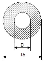 그림과 같이 안쪽원의 지름이 D1, 바깥쪽의 원의 지름이 D2인 두 개의 동심원 사이에 유체가 흐르고 있다. 이 유동 단면의 수력지름(hydraulic diameter) 을 구하면?