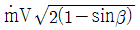 그림과 같이 입구와 출구가 β의 각을 이루고 있는 고정된 판에 질량유량