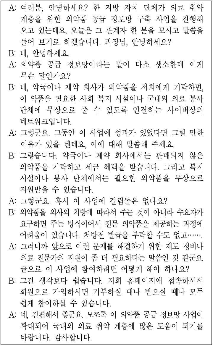 다음 진행자 'A'의 대화 진행 전략으로 적절하지 않은 것은?