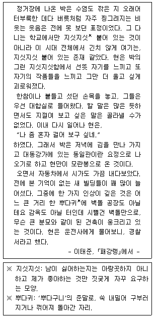 ‘현’은 자신과 비슷한 처지에 있는 ‘박’을 통해 자신을 연민하고 있다.