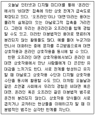 온라인 비대면 활동과 오프라인 대면 활동이 온전히 분리되어 있는 것은 아니다.