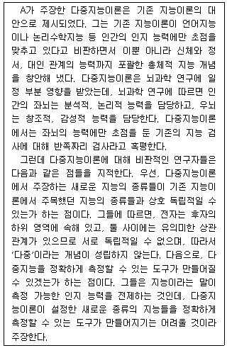논리수학지능은 다중지능이론의 지능 개념에 포함되지 않는다.