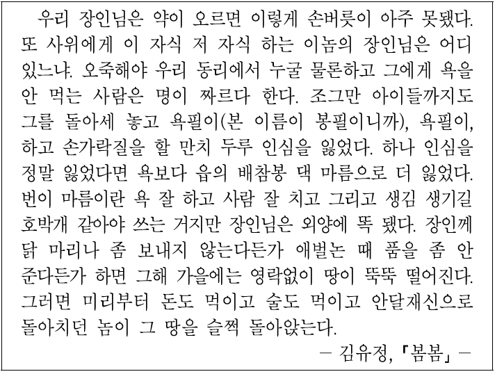 장인과 소작인들 사이의 뒷거래 장면을 생생하게 묘사하여 제시했다.