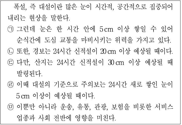 ㉠〜㉤의 전개 순서로 가장 자연스러운 것은?