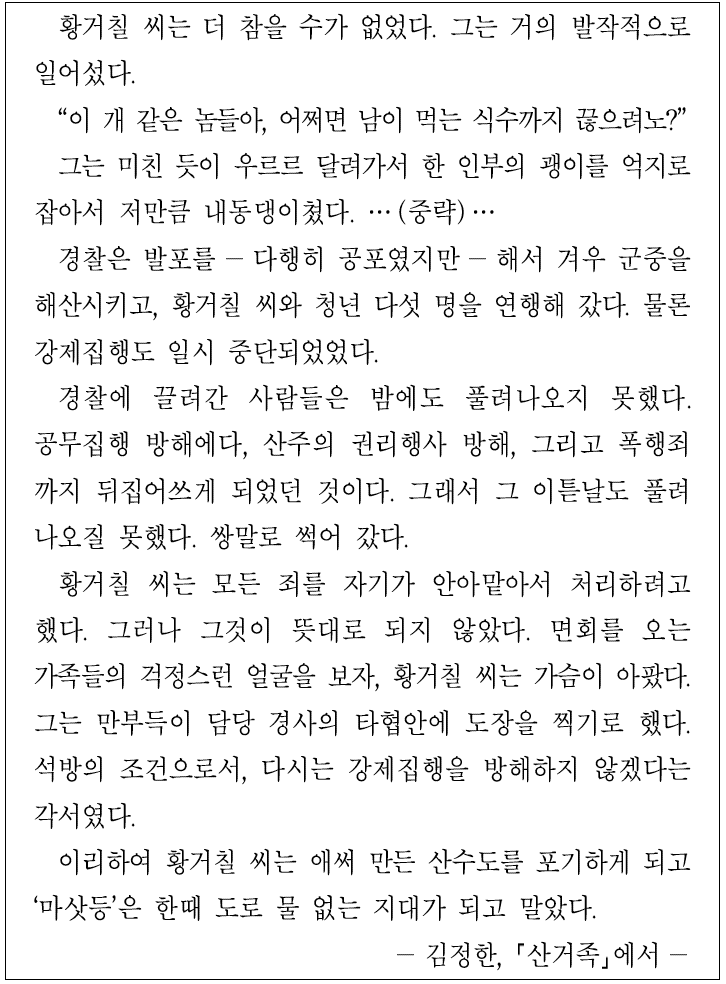 다음 글에서 '황거칠'이 처한 상황에 어울리는 한자 성어로 가장 적절한 것은?