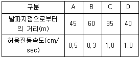 시험발파에서 V(cm/sec)=160(SD)-1.6의 발파진동식을 얻었으며 제곱근 환산거리를 이용하였다. 이때 보안물건이 다음과 같이 있을 경우 지발당 최대 허용장약량 계산의 기준이 되는 보안물건은?