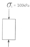 그림과 같이 축방향으로 100kPa 이 응력을 받고 있는 시편의 경우 최대 전단응력의 크기와 방향에 대한 설명 중 옳은 것은? (단, 압축 응력은 + 부호이다.)