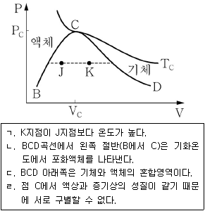 <보기 1>의 압력(P)-부피(V) 상도에 대한 설명으로 옳은 것을 <보기 2>에서 모두 고른 것은?
