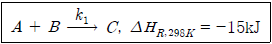 <보기>의 기상 반응은 25℃에서의 발열반응이다. 이 반응을 800℃에서 실시할 때, 발열반응인지 여부와 반응열은? (단, 반응물의 25℃와 800℃에서의 평균비열은 , , 로 계산한다.)