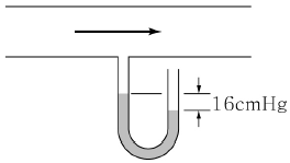 아래와 같이 관 내에 유체가 흐르고 있을 때 열린 마노미터는 16cmHg를 가리키고 있다. 관내 유체의 절대압력(cmHg)을 구하면? (단, 대기압은 1atm이다.)