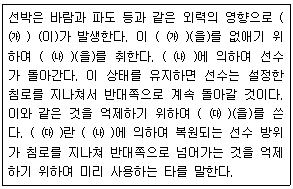 <보기>는 선박의 침로 제어와 관련한 내용이다. ㈎, ㈏, ㈐에 들어갈 단어는?