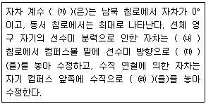 <보기>는 자기컴퍼스의 자차 계수와 자차 수정에 관련된 내용이다. ㈎, ㈏, ㈐, ㈑에 들어갈 단어는?