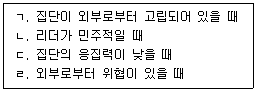 제니스(I. Janis)가 제시한 집단사고(groupthink)가 발생할 가능성이 높은 상황을 모두 고른 것은?