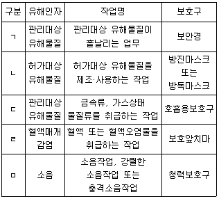 산업안전보건기준에 관한 규칙상 유해인자 취급 작업별 보호구에 관한 설명으로 옳지 않은 것은?