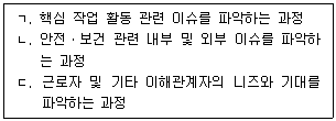 안전보건경영시스템의 적용 범위 결정방법에 관한 지침상 안전보건경영시스템의 범위(경계) 결정의 핵심 과정을 모두 고른 것은?