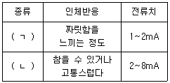감전시 응급조치에 관한 기술지침상 통전전류에 의한 영향에 관한 내용이다. ( )에 들어갈 것으로 옳은 것은?