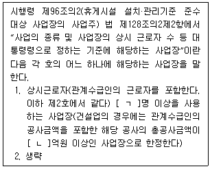 산업안전보건법령상 휴게실 설치·관리기준 준수대상 사업장에 관한 규정의 일부이다. [ ]에 들어갈 숫자를 옳게 나열한 것은?