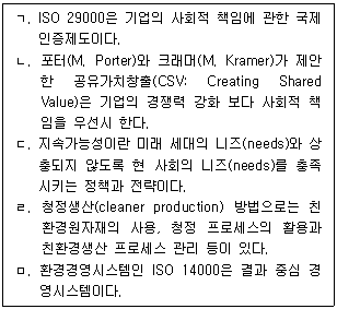 생산운영관리의 최신 경향 중 기업의 사회적 책임과 환경경영에 관한 설명으로 옳은 것을 모두 고른 것은?
