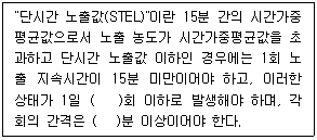 산업안전보건법령상 유해인자별 노출 농도의 허용기준과 관련하여 단시간 노출값의 내용이다. ( )에 들어갈 숫자가 순서대로 옳은 것은?