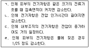 인체의 전기저항에 관한 설명으로 옳은 것을 모두 고른 것은?