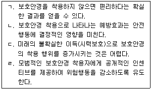 용접공이 작업 중에 보호안경을 쓰지 않으면 시력손상을 입는 산업재해가 발생한다. 용접공의 행동특성을 ABC행동이론(선행사건, 행동, 결과)에 근거하여 기술한 내용으로 옳은 것을 모두 고른 것은?(문제 오류로 실제 시험에서는 전항 정답 처리 되었습니다. 여기서는 1 번을 누르면 정답 처리 됩니다.)