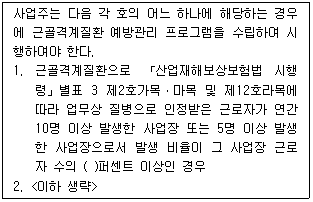 산업안전보건기준에 관한 규칙 제662조(근골격계질환 예방관리 프로그램 시행) 제1항 규정의 일부이다. ( )에 들어갈 숫자가 옳은 것은?