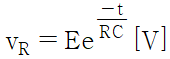 RC 직렬회로에 전압 E[V]를 가할대 저항 단자 전압 vR은 다음 식과 같다. t=0 일 때 vR[V]의 값은?