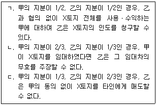 개업공인중개사가 X토지를 공유로 취득하고자 하는 甲, 乙에게 설명한 내용으로 옳은 것을 모두 고른 것은? (다툼이 있으면 판례에 따름)